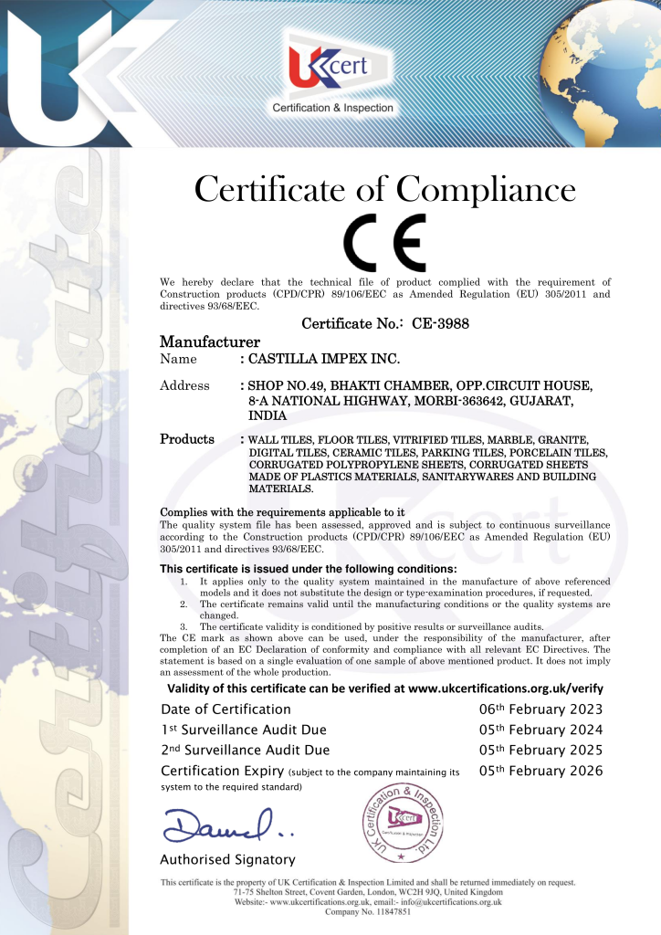 CASTILLA Ceramica is a global brand dedicated to providing top-quality tiles and sanitary ware. With a commitment to innovation, reliability, and state-of-the-art technology, we strive to enhance customer satisfaction by offering products that align with the latest market trends.